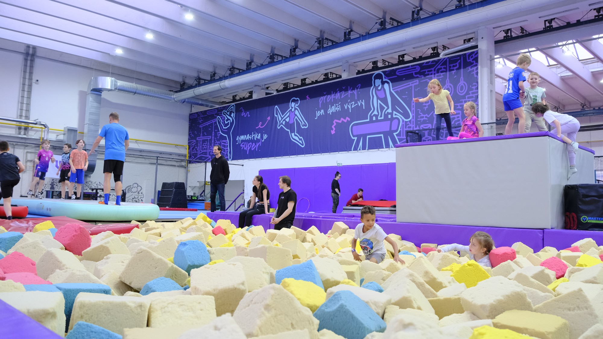 Salto, hrazda nebo odraz z trampolíny – dopadni do tisíců molitan jako do obřího polštáře.