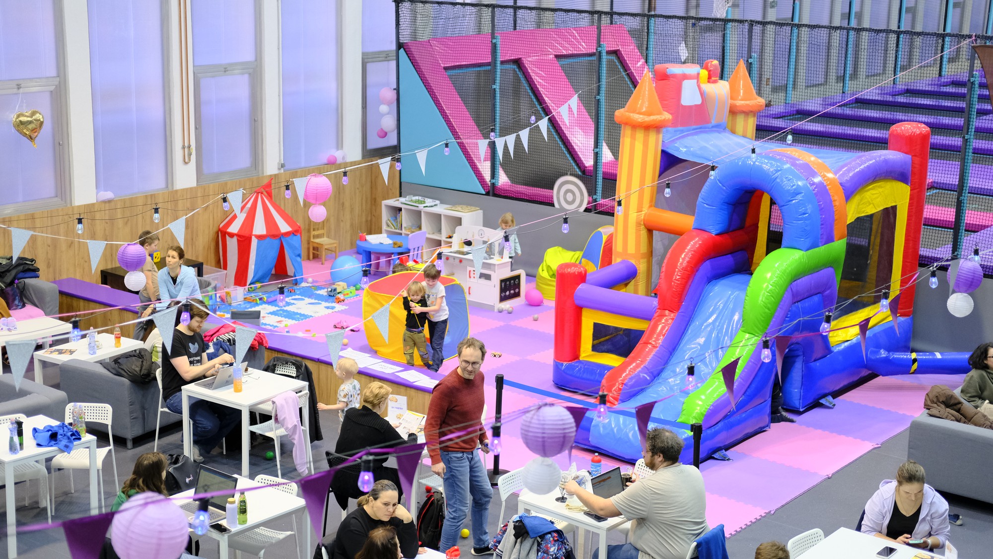 Bezpečná zóna u kavárny pro nejmenší – hrají si oni, vy si odpočinete.