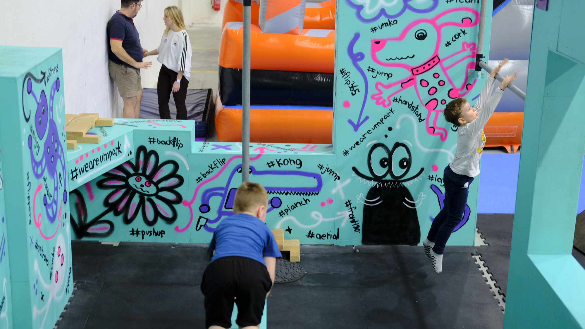 13+ atrakcí pod jednou střechou – od trampolín přes parkour a airbag až po kavárnu. Každá návštěva je jiná.